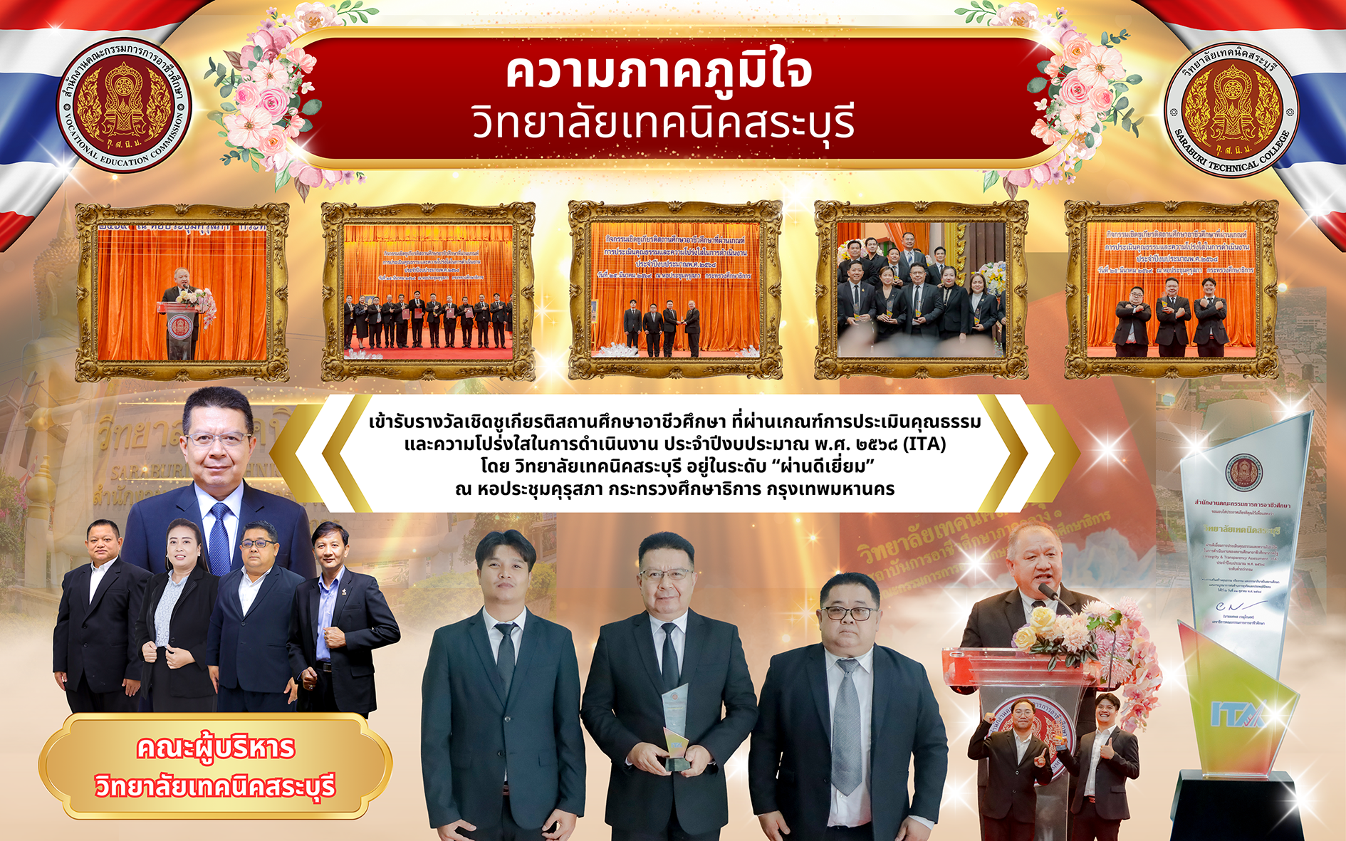 วิทยาลัยเทคนิคสระบุรี คว้าผลประเมินระดับ "ผ่านดีเยี่ยม" รางวัลสถานศึกษาอาชีวศึกษาต้นแบบด้านคุณธรรมและความโปร่งใส (ITA) ปีงบประมาณ 2568