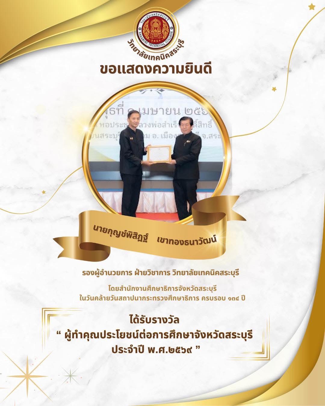 รางวัล "ผู้ทำคุณประโยชน์ต่อการศึกษาจังหวัดสระบุรี" ประจำปี พ.ศ. 2569